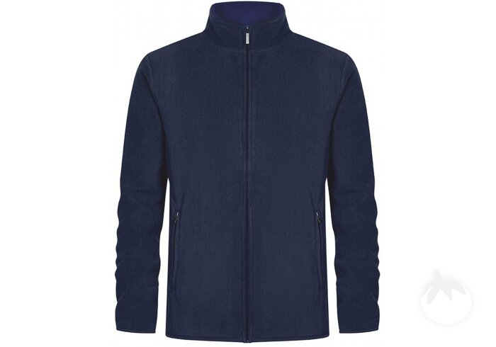 Double fleece jacket with stand-up collar and fulllength zipper, narrow sleeve hem with elastic binding as well as side pockets with zipper. The inside of the jacket is in contrast colour, produced of polyester with anti-pilling finishing both sides. The fleece jacket has a slimmer cut.