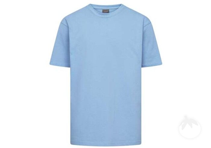 Heavy, solid heavy jersey T-Shirt with elastane in small rib neckline, produced